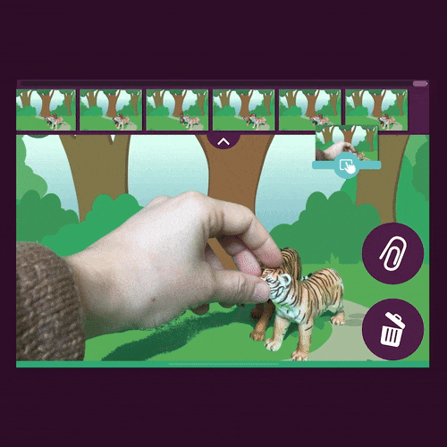 Mix physical and digital backgrounds and shapes in the Piximakey app, without technical hassle or other software. You can add greenscreen to your stop motion film at the push of a button - and you choose whether it is green or another color to be replaced by a digital background or a photo from your camera roll.
